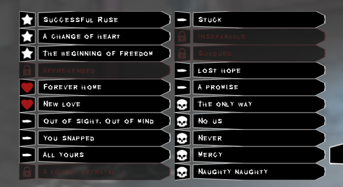 Awesome game! I love how there are so many possibilities and how everything is very well calculated. The only request I have is that I couldn't unlock some of the endings for Sebastian (kidnapped with partner route), and I was hoping that you could possibly update the guides with some help.